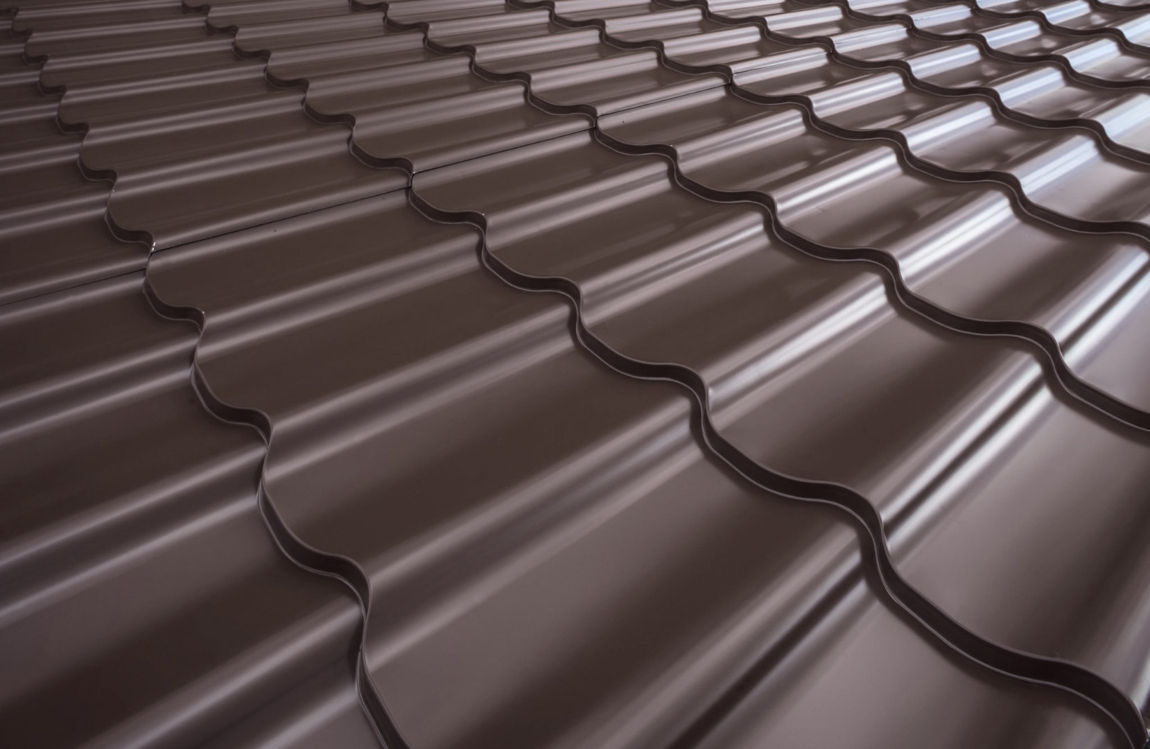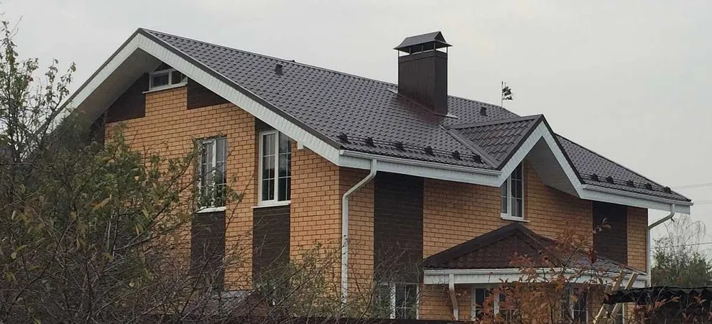 Цвет RAL 8017 добавляет дому уют и солидность, идеально сочетаясь с фасадами из кирпича или дерева. Профиль имитирует натуральную черепицу, повышая визуальную ценность объекта.